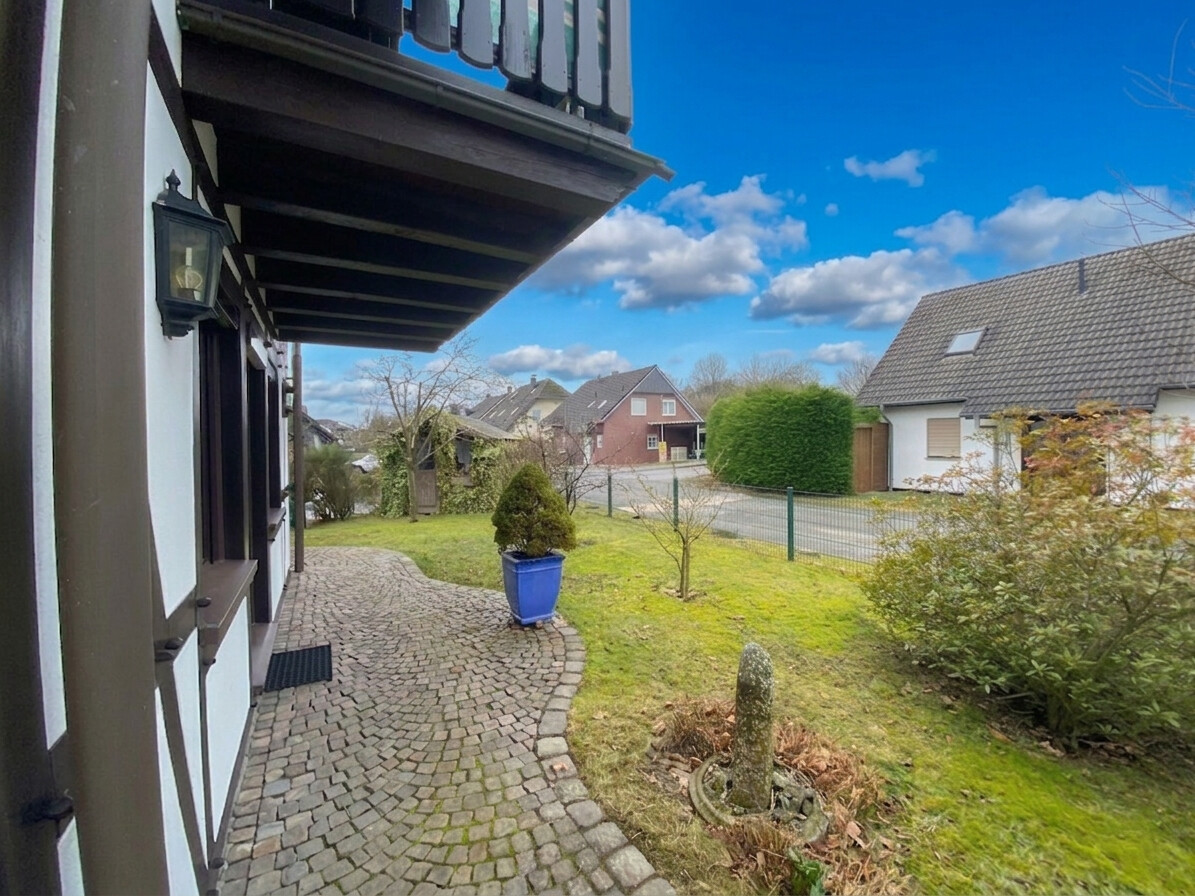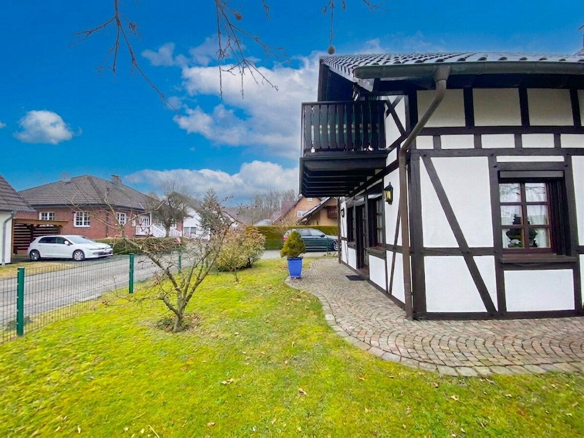 Dieses traumhafte Fachwerkhaus in Doppelständerbauweise, im Jahr 2008 errichtet, verbindet traditionelle Architektur mit zeitgemäßem Wohnkomfort und bietet ein außergewöhnliches Wohnambiente mit klassischem Fachwerkcharakter. Auf einer Wohnfläche von ca. 140 m² und einem Grundstück von ca. 530 m² findet hier Ihre Familie ein gemütliches Zuhause mit viel Platz zum Leben, Wohlfühlen und Entspannen. Im Erdgeschoss empfängt Sie eine einladende Diele, ein großzügiger Wohn- und Essbereich sowie die Küche, ausgestattet mit einer hochwertigen Einbauküche im Landhausstil, die im Angebot enthalten ist. Der wunderschöne, terracottafarbene Natursteinboden im gesamten Erdgeschoss verleiht den Räumlichkeiten eine besondere Tiefe und einen exklusiven Charakter. Sichtbare Holzbalken prägen das Erscheinungsbild der Räume zusätzlich und setzen stilvolle Akzente. Ergänzt wird das Erdgeschoss durch einen HWR, eine kleine Abstellkammer unter der Treppe sowie ein Gäste-WC. Im Obergeschoss befinden sich zwei Schlafzimmer, ein Badezimmer mit Fußbodenheizung sowie ein weiteres Gäste-WC. Ein zusätzlicher, kleiner Raum bietet sich hervorragend als Bügelzimmer oder individueller Arbeitsbereich an. Abgerundet wird das Obergeschoss durch einen ansprechenden Parkettboden.Ausstattung