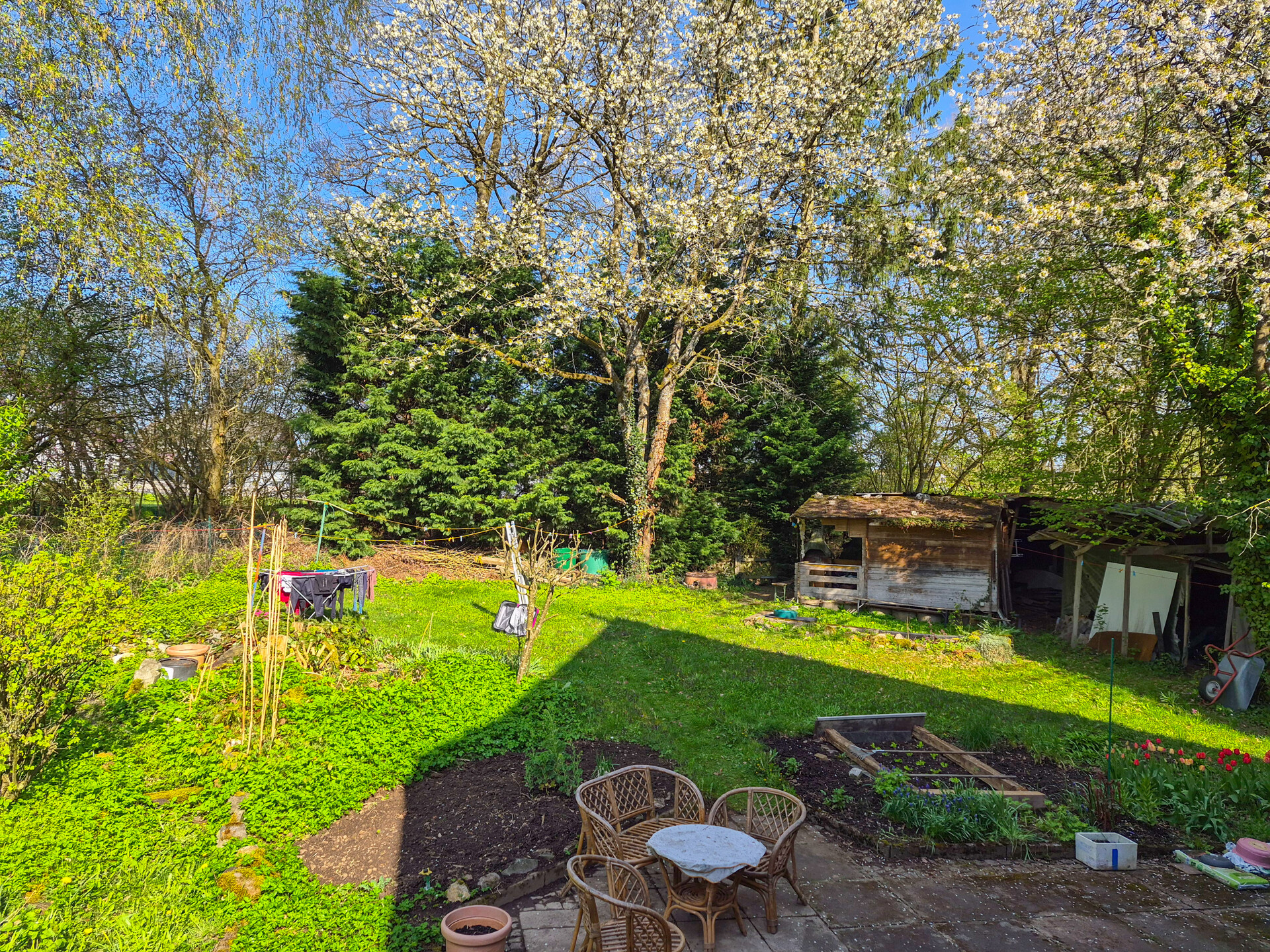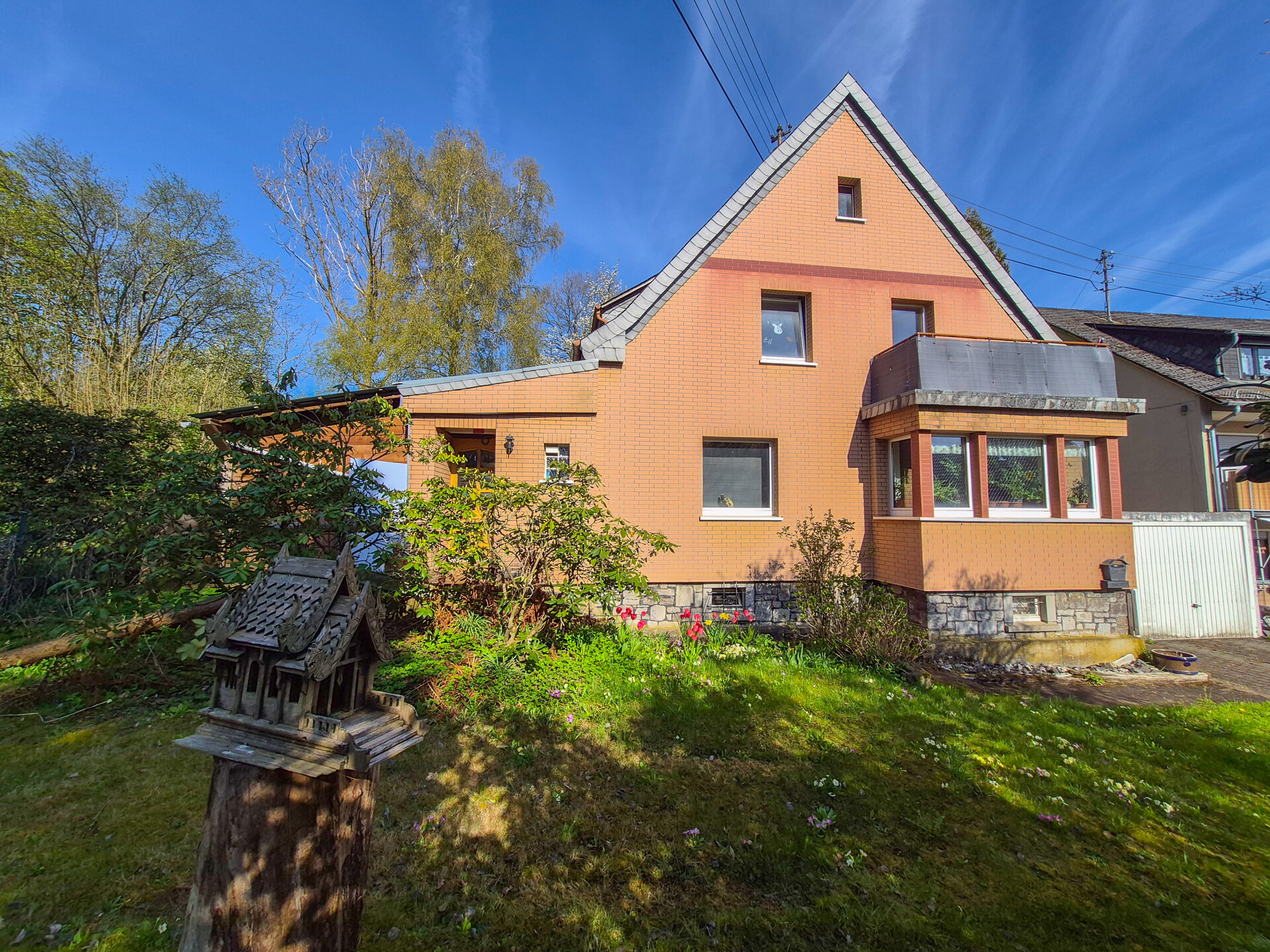 In bevorzugter und ruhiger Wohnlage präsentiert sich dieses geräumige Wohnhaus, das ca. im Jahr 1950 in solider, massiver Bauweise errichtet wurde. Die Immobilie verfügt über eine Wohnfläche von rund 150 m² zuzüglich Kellergeschoss und bietet damit viel Platz für individuelles Wohnen. Das etwa 830 m² große Grundstück ist pflegeleicht angelegt, eingefriedet und teilweise uneinsehbar. Hinter dem Haus laden eine großzügige Terrasse sowie ein praktisches Garten- bzw. Gerätehaus zum Verweilen im Freien ein. Für Ihre Fahrzeuge stehen eine Garage sowie ein zusätzlicher Stellplatz zur Verfügung. In den Jahren 2003/2004 wurde das Haus energetisch modernisiert: Die Außenwände erhielten eine ca. 50 mm starke Dämmung und wurden mit einer Kunststofffassade in Klinkeroptik neu verkleidet. Aufgrund der Auswanderung der Eigentümer wird die Immobilie inklusive Inventar angeboten!Ausstattung