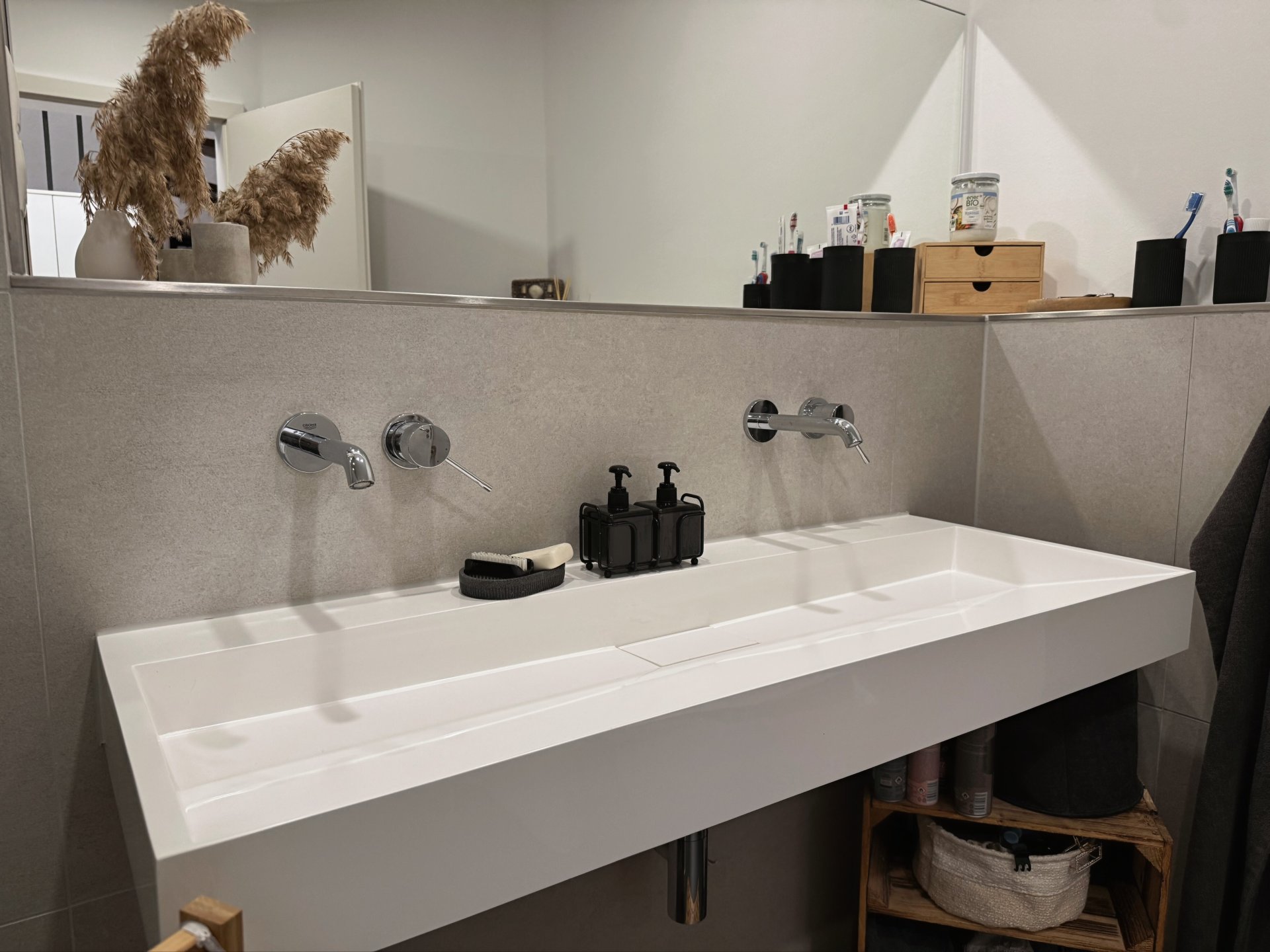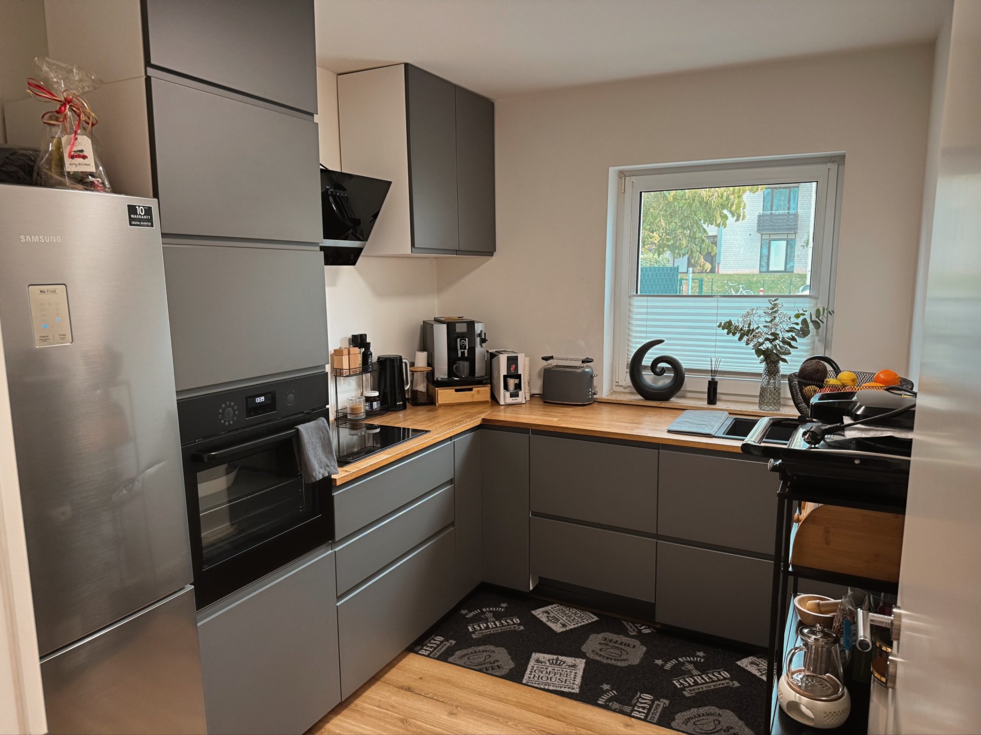 Beim Betreten des Hauses öffnet sich ein harmonisch gestalteter, offener Wohnbereich, der sofort ein Gefühl von Großzügigkeit und Behaglichkeit vermittelt. Der Eingangsbereich führt direkt in den lichtdurchfluteten Essbereich und das daran anschließende Wohnzimmer, von dem aus man auf die sonnige Terrasse und in den gepflegten Garten gelangt – ein idealer Ort zum Entspannen, Spielen oder für gemütliche Stunden im Freien. Zudem ist der Garten auch über den Zugang von der Garage aus erreichbar. Die Küche grenzt praktisch an und eignet sich bestens für gemeinsames Kochen und gesellige Momente. Ein Gäste-WC ergänzt das Erdgeschoss sinnvoll. Im ersten Obergeschoss befinden sich zwei helle, freundlich geschnittene Kinderzimmer sowie ein eigenes Dusch-Badezimmer. Diese Etage bietet viel Platz für individuelles Wohnen und eine angenehme Rückzugsmöglichkeit für die ganze Familie. Das Dachgeschoss bildet eine private Wohlfühlebene: Hier befindet sich das Hauptschlafzimmer sowie ein zusätzliches Büro, das sich ideal für Home-Office oder als ruhiger Kreativraum eignet. Durch die Lage im obersten Geschoss entsteht eine besondere Atmosphäre von Ruhe und Geborgenheit. Der Keller erweitert die Nutzfläche um einen vielseitigen, wohnlich ausgebauten Aufenthaltsraum, der sich hervorragend als Hobby-, Fitness- oder Freizeitraum eignet. Ein separater Waschraum und weitere Lagerflächen sorgen dafür, dass der Alltag bestens organisiert werden kann. Insgesamt präsentiert sich das Haus als ein wunderschönes, neuwertiges, gepflegtes Zuhause mit viel Raum, Komfort und Wohlfühlcharakter – ideal für Familien und alle, die modernes Wohnen in angenehmer Atmosphäre schätzen.Ausstattung